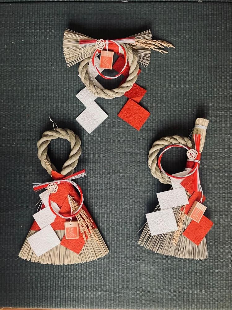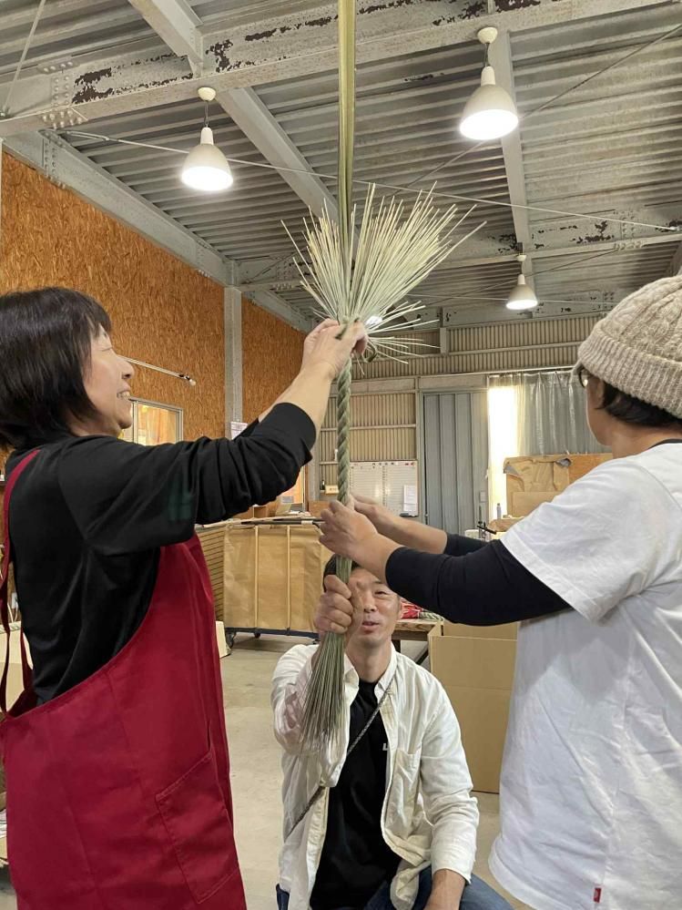 熊本県から届くイグサを結い、山梨産の和紙を紙垂(しだ)にし、干支を描いた吉野杉の木札を使うなど、すべて国内産の素材を福岡の大川で一つ一つ仕上げています。